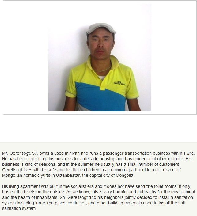 A loan of $2,225 helps Gereltsogt to install the soil sanitation system.