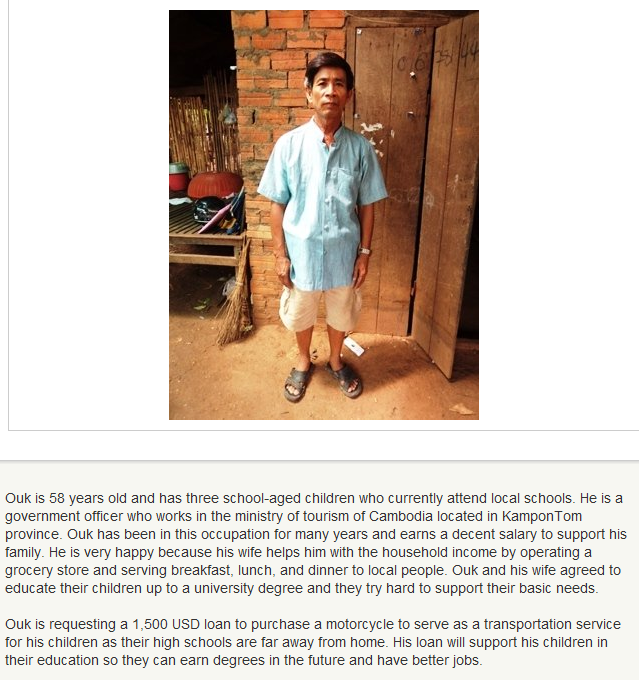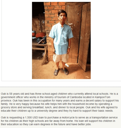 A loan of $1,500 helps Ouk to purchase a motorcycle so his children can commute to school.