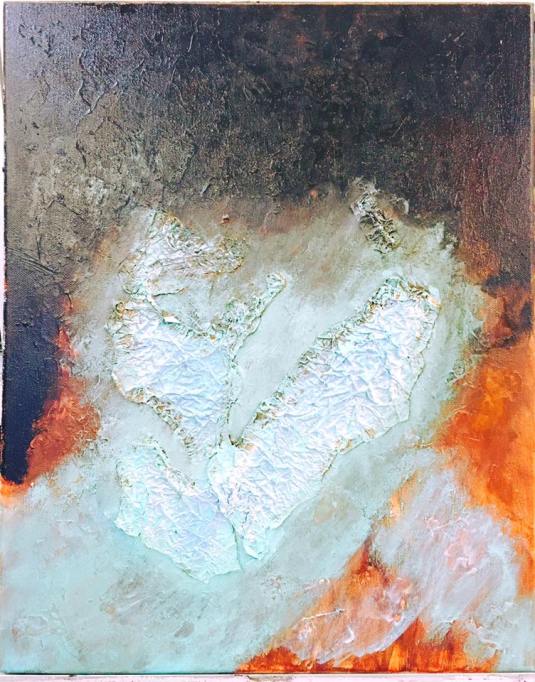 Using multiple medium creates various textures and I feel that abstract art emphasis on composition. Deliberate brush strokes are also of importance. Different angles display different aspect of my thoughts and feelings inside of me.